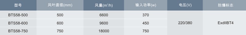 > 具有防爆性能好,結構合理、運行平穩、使用方便、外形美觀等優點。風葉采用高強度鋁合金制成。